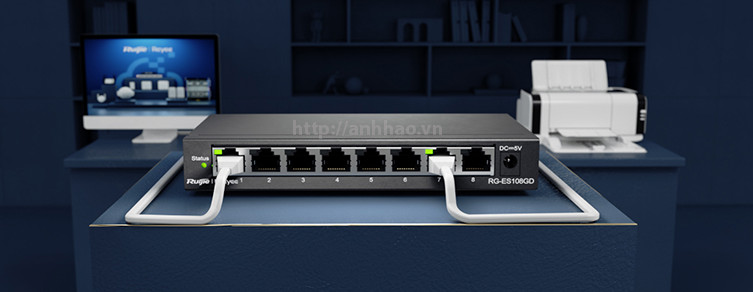 - Tối ưu hóa hiệu suất mạng: Với tốc độ chuyển mạch 16Gbps và khả năng tự động điều chỉnh kết nối, RG-ES108GD giúp cải thiện hiệu suất mạng, đảm bảo truyền tải dữ liệu nhanh chóng và ổn định.