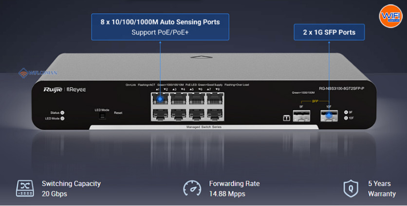 Thông tin chi tiết về Switch RG-NBS3100-8GT2SFP-P: