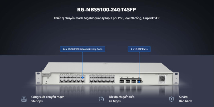 Đặc điểm kỹ thuật nổi bật của RG-NBS5100-24GT4SFP